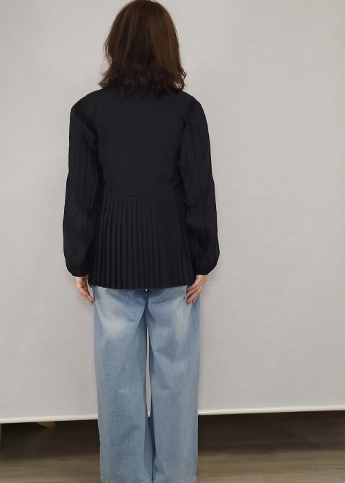 袖&裾プリーツ切り替えリボンブラウス(2way)