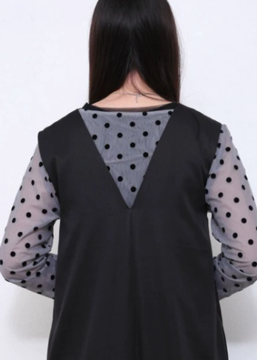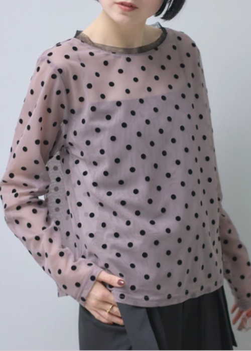 トレンドのドットと二重のオーガンジー素材が印象的なカットソー。