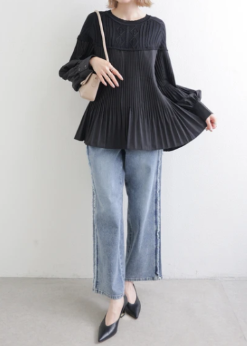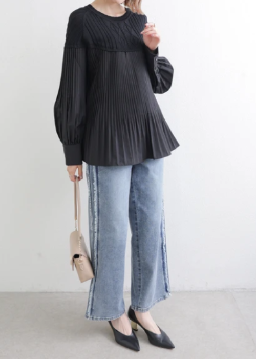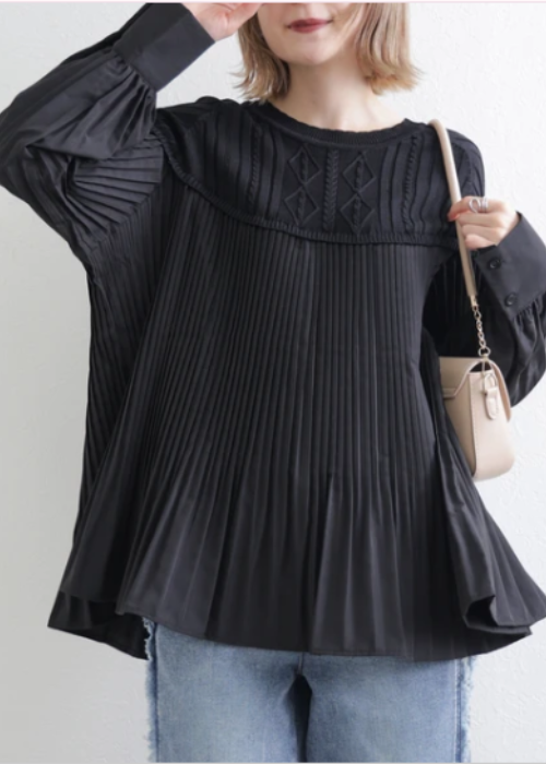 ニット切り替えブラウス