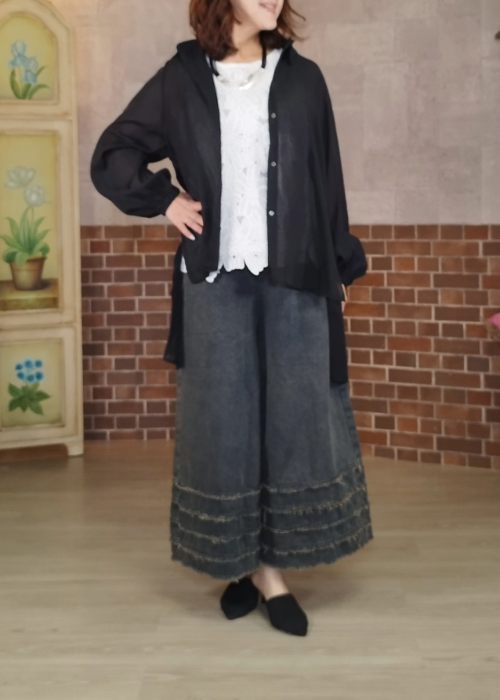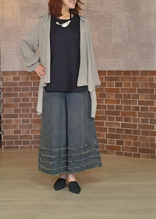 ワイドパンツやワンピースなどのコーデと相性が良いです。