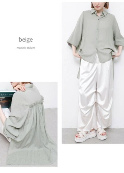 シンプルですが、1枚で映えるオーバーブラウスです。