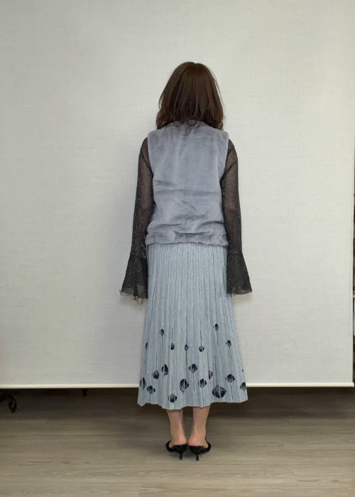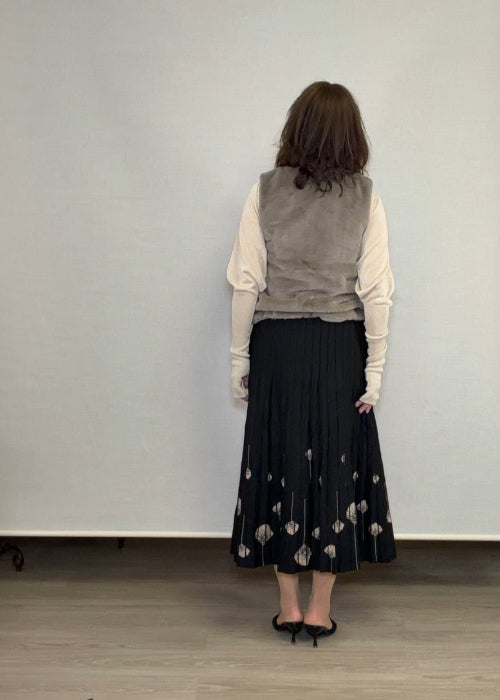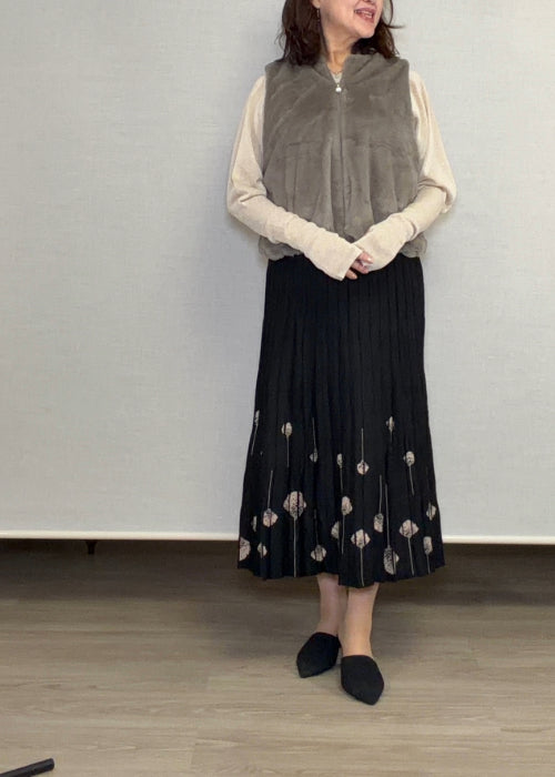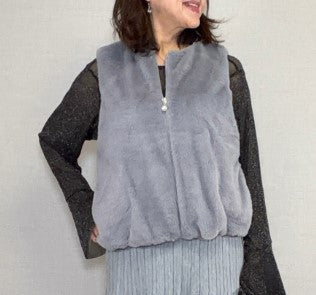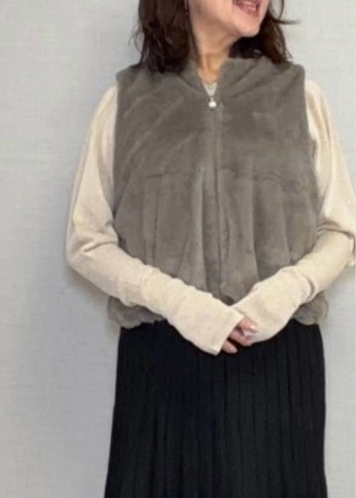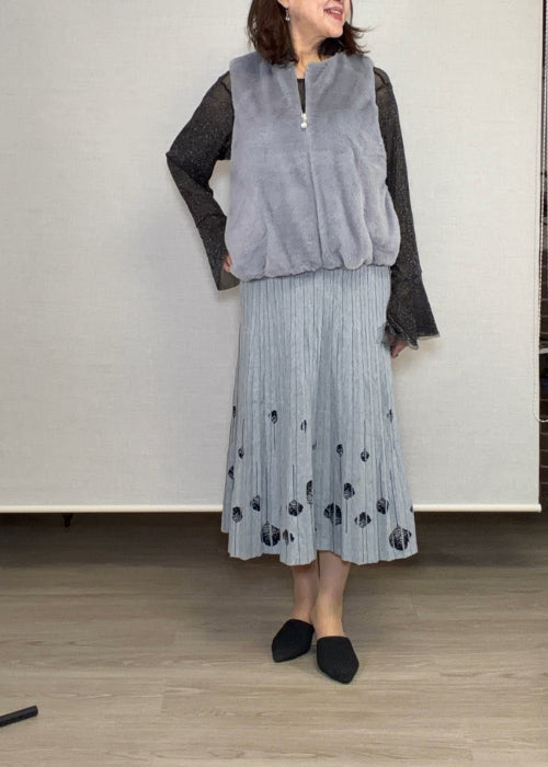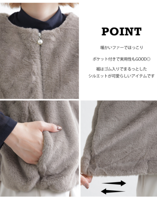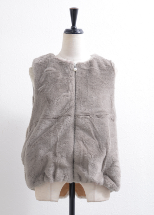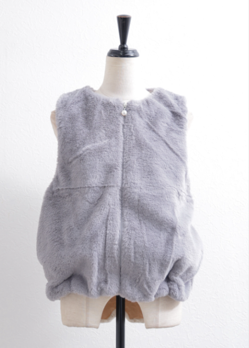 大きめパールのフロントジップがワンポイントになって、エレガントさを演出してくれます。