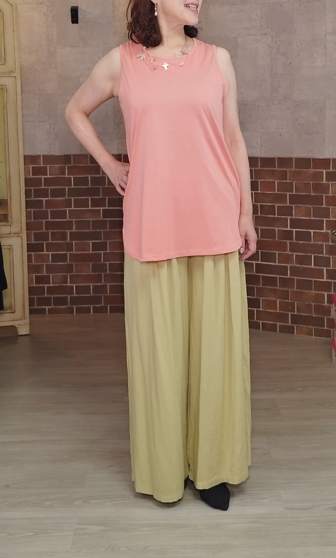 ゆったりしていて素材も透け感はなく、肉感を拾わないので、夏場は一枚で着てもおしゃれですし、透け感のあるカーディガンやセーターなどと組み合わせても素敵です。