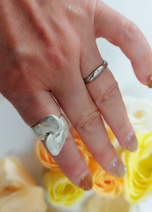 燻したsilverが大きく立体的にクロスした、大ぶりなファッションリングです。