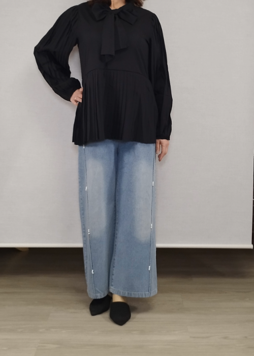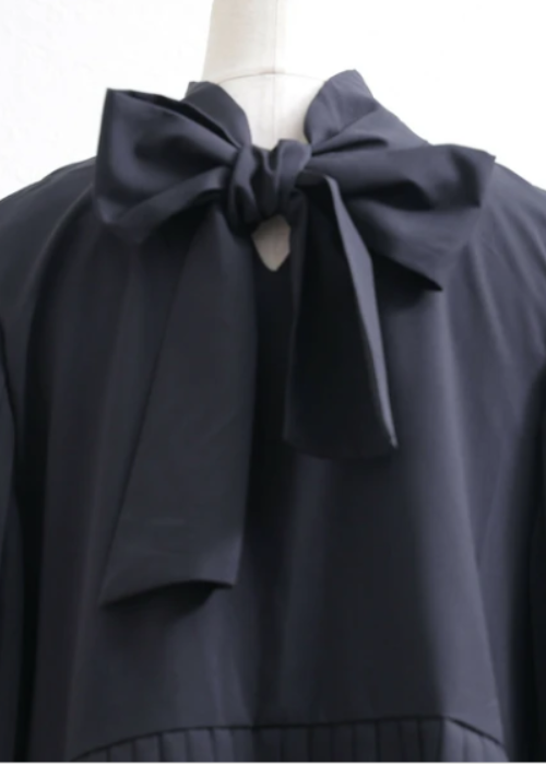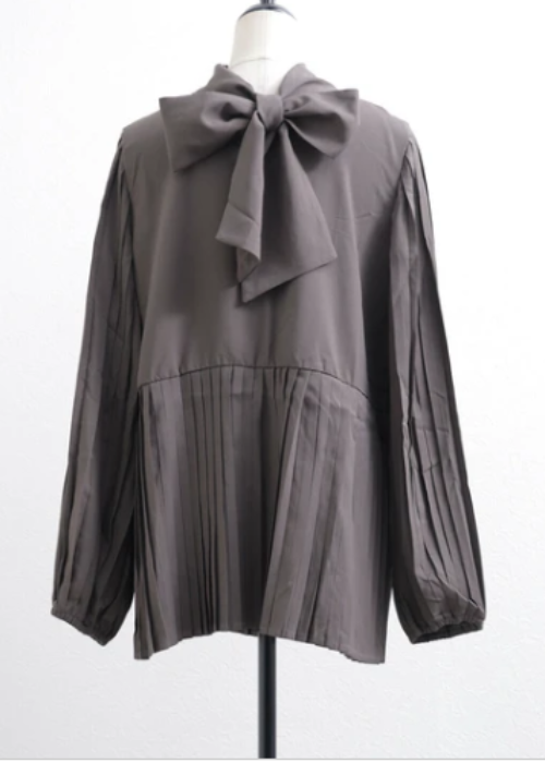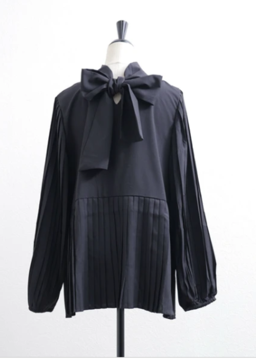 袖&裾プリーツ切り替えリボンブラウス(2way)