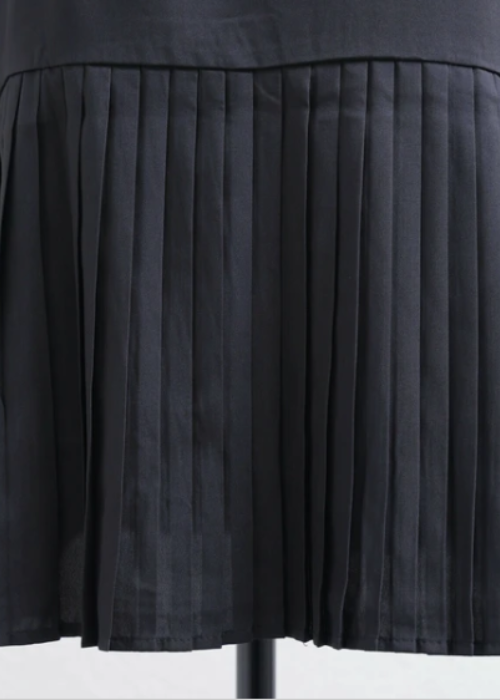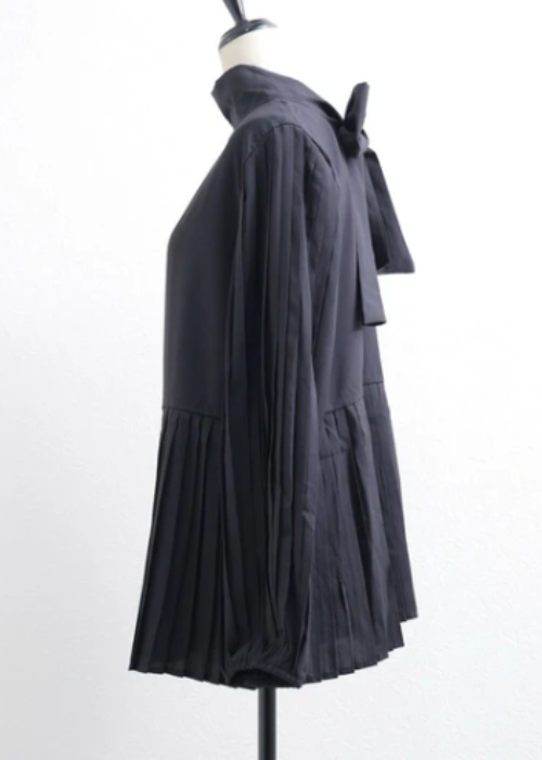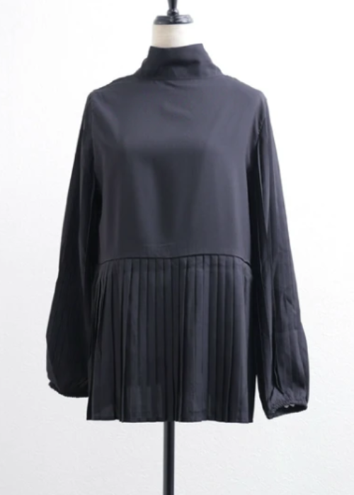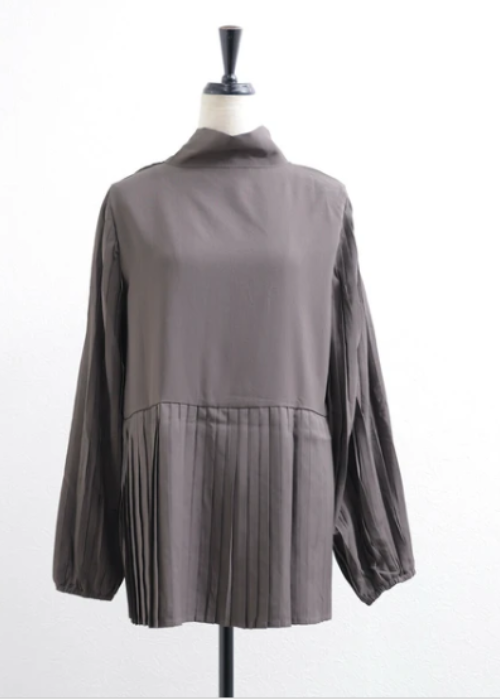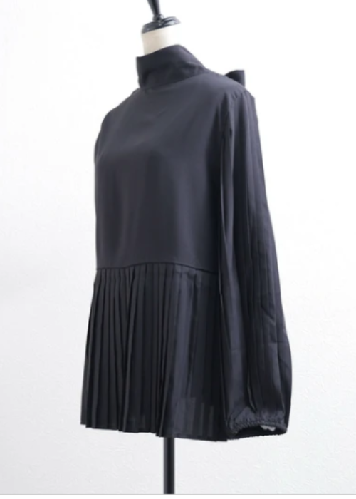 お袖と裾のプリーツがとてもお洒落で、インしなくても着れるプルオーバーです。