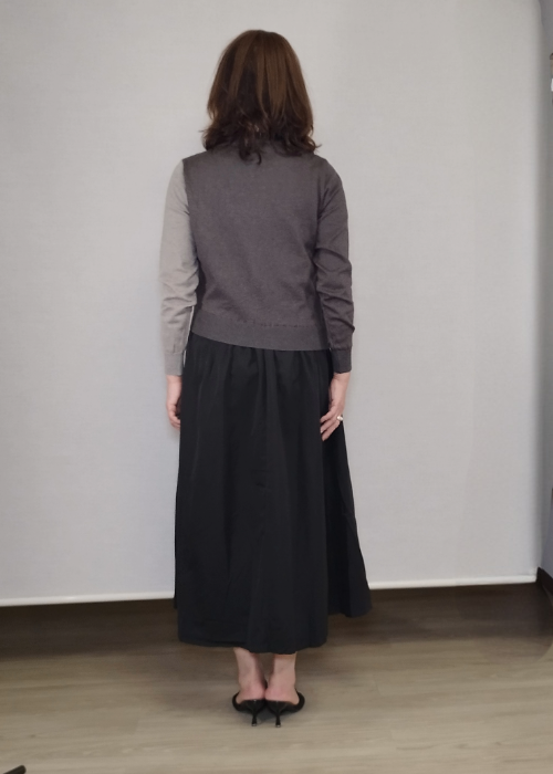 トップスに厚みがない素材でしなやかなので、身体に馴染んでとてもスッキリ細見えします。