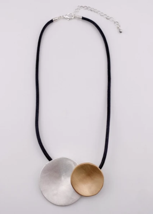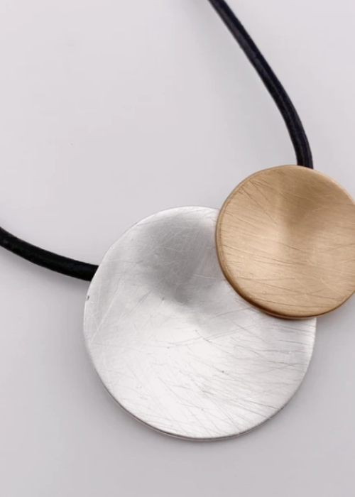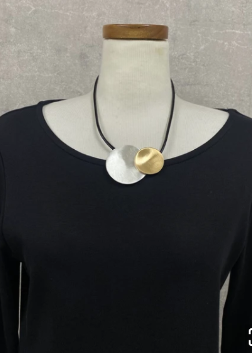 大小のgoldとsilverのコンビネーションネックレスです。